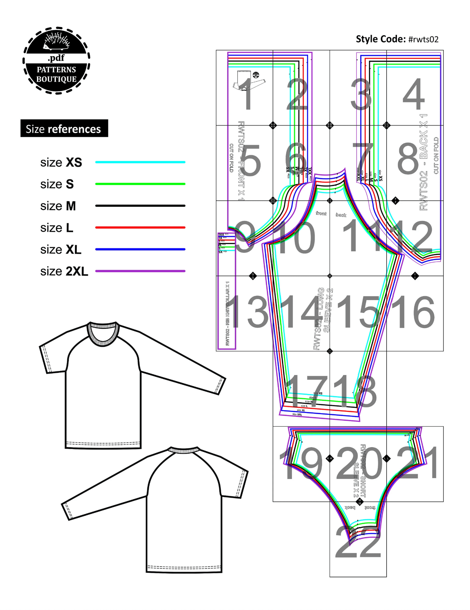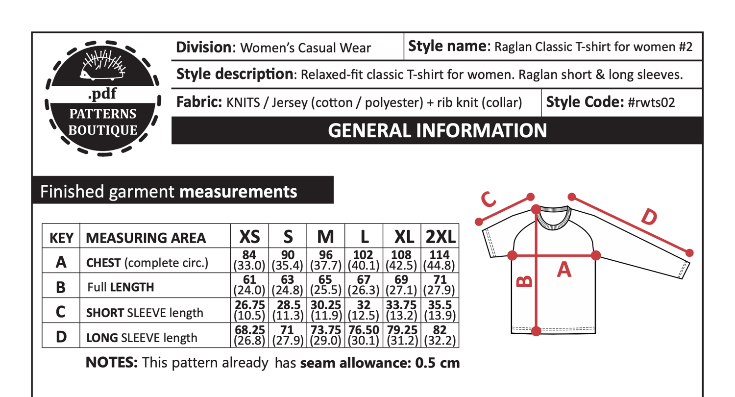 PDF Printable Sewing Pattern: CLASSIC RAGLAN T-SHIRT with both SHORT and long SLEEVES: Relaxed/Classic-fit for Women