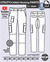 PDF printable industrial sewing pattern. UTILITY WORKING PANTS / HEAVY DUTY MULTI POCKET: Classic fit