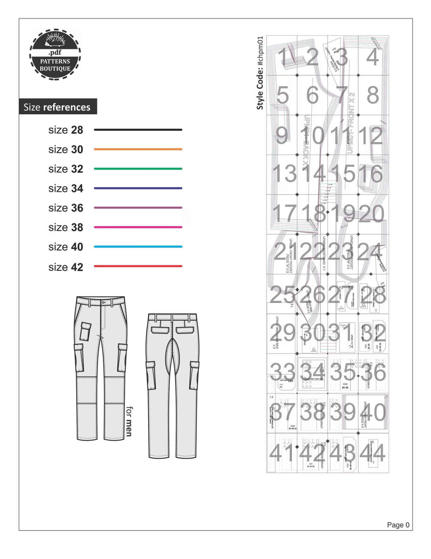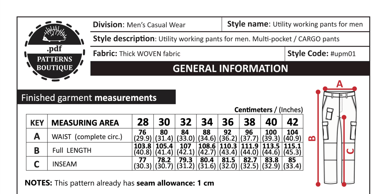 WORKING PANTS for Men / PDF Sewing Pattern & Youtube Video / Heavy Duty Multi Pockets / Cargo Utility Working Pants / 8 Sizes: 28 to 42 / Instant download