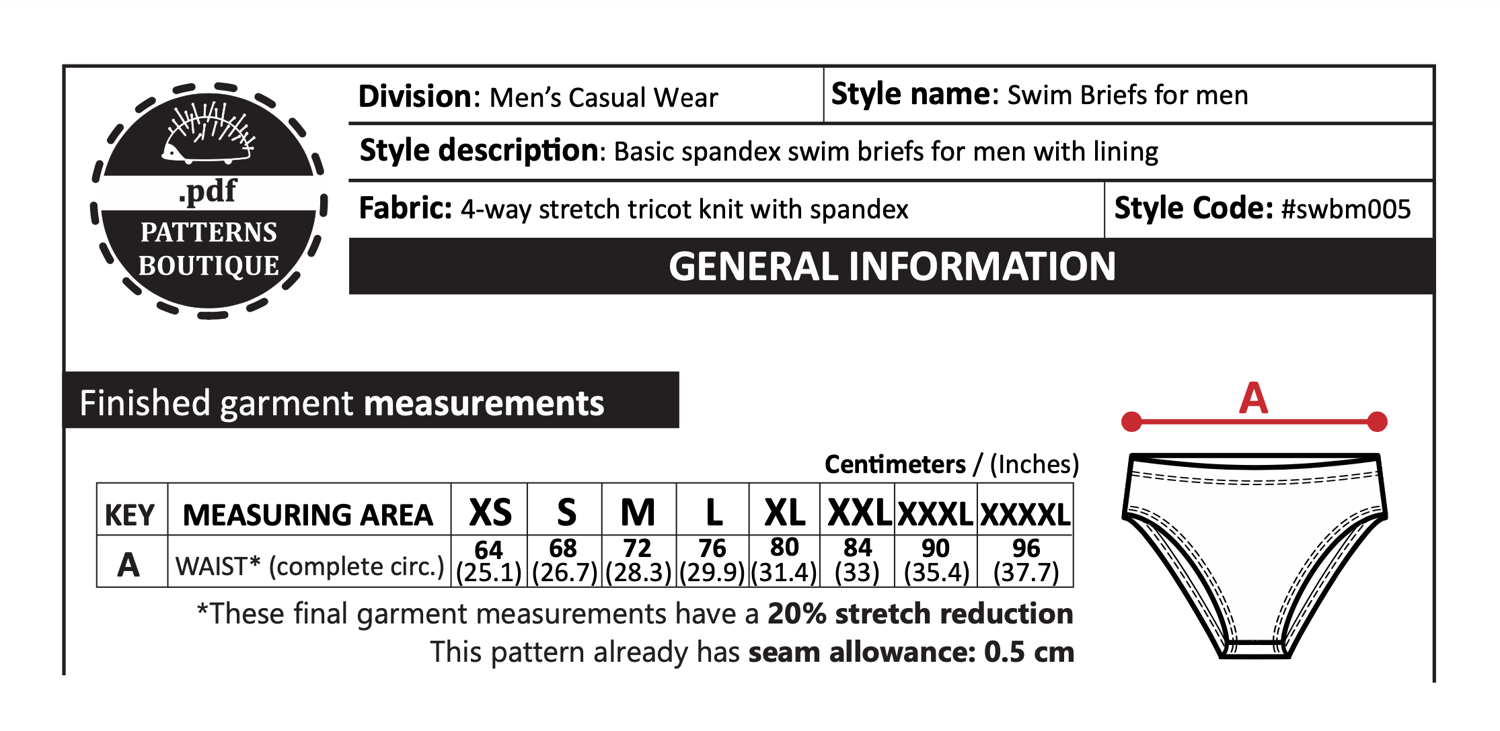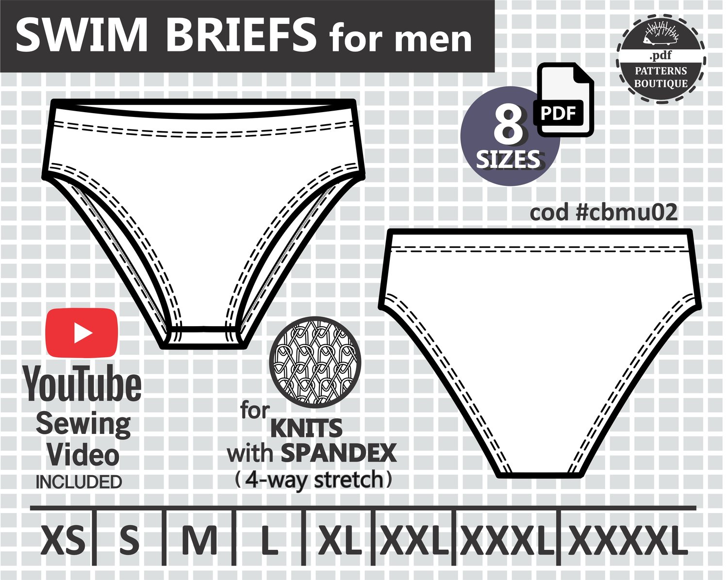 Basic SWIM BRIEFS for Men - PDF Sewing Pattern & Youtube Video / 8 Sizes: XS to XXXXL / Instant Download