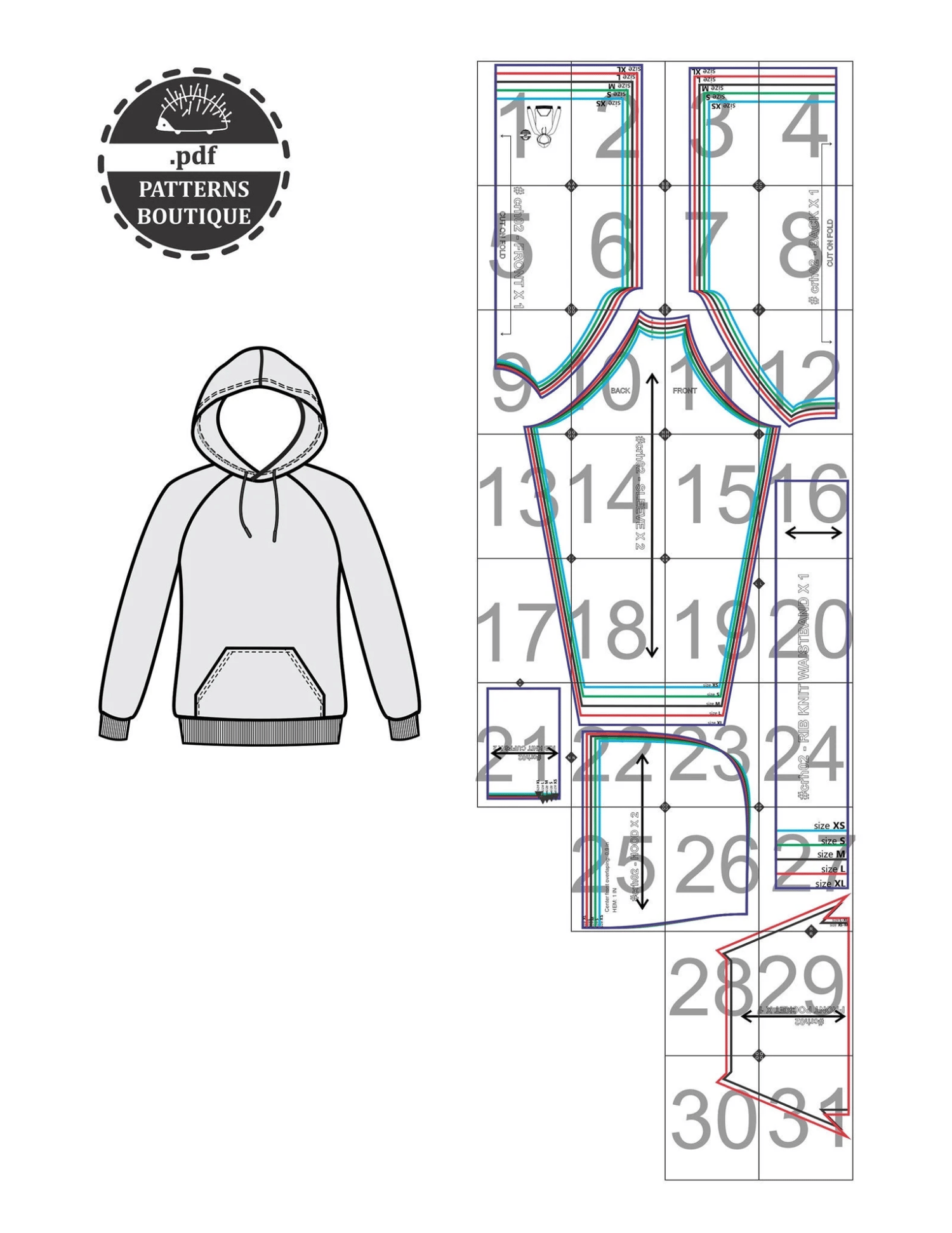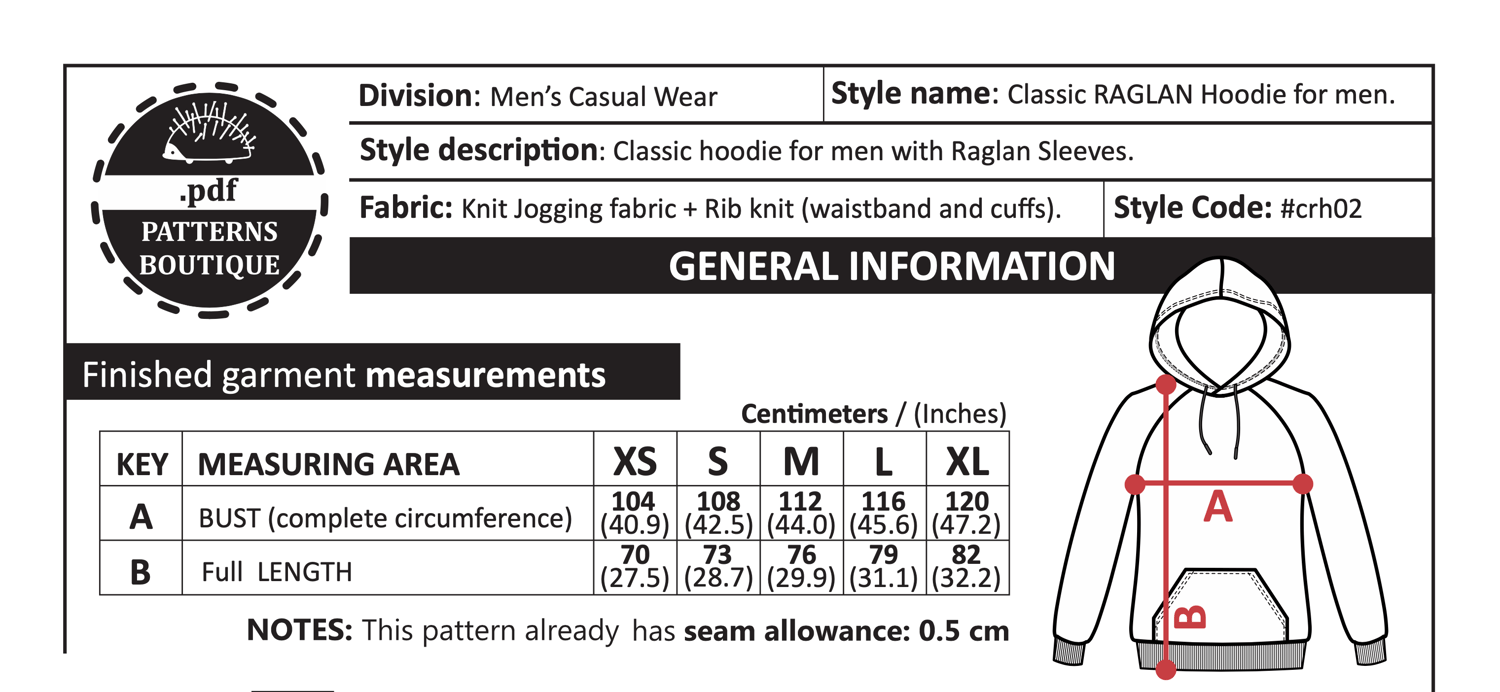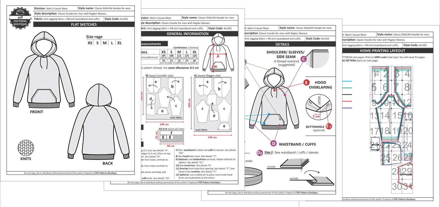 PDF Sewing Pattern. RAGLAN HOODIE: Relaxed-fit for Men