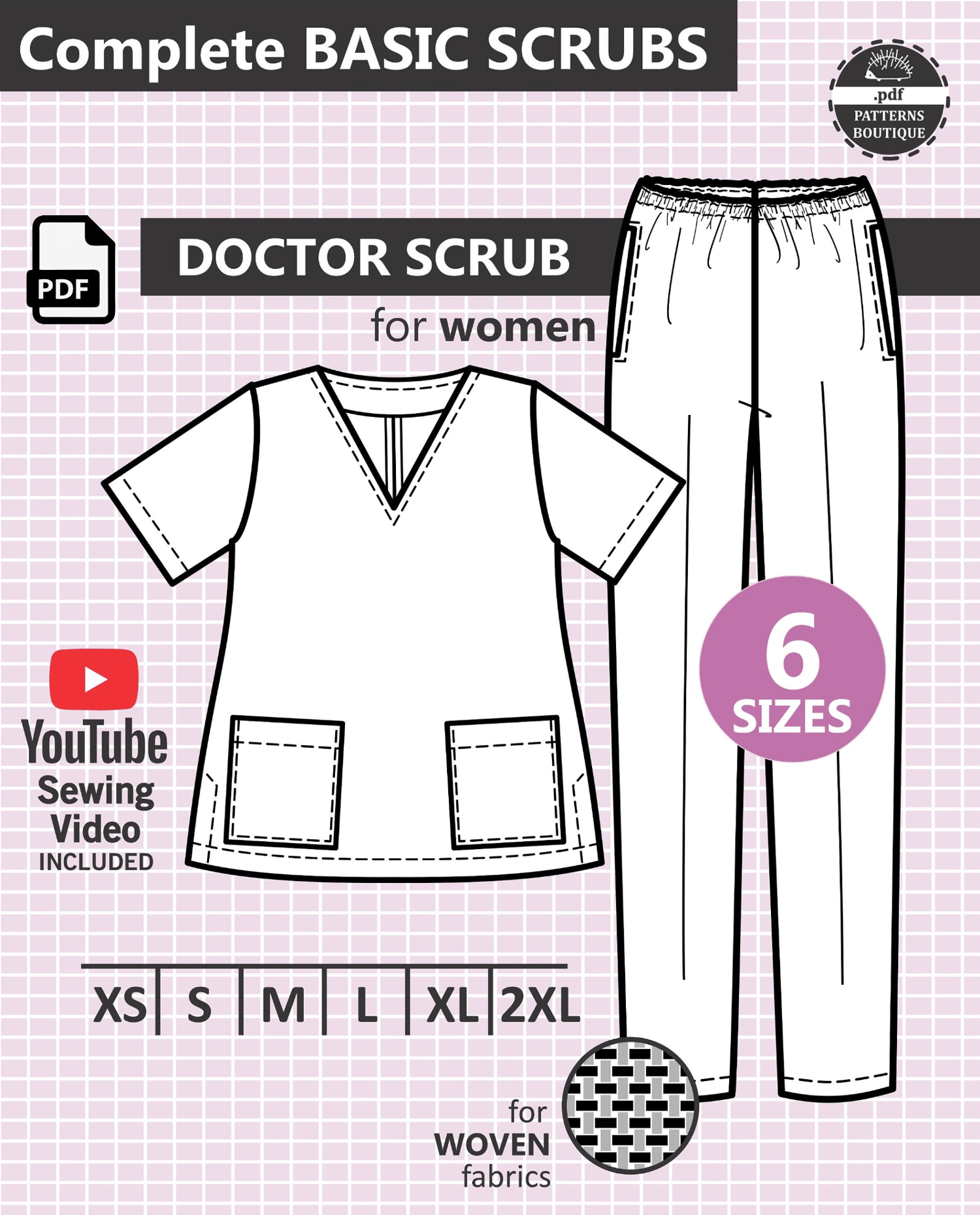 DOCTOR SCRUBS for Women (TOP & PANTS) / PDF Sewing Pattern & Youtube Video / 6 Sizes: XS to XXL / Instant Download