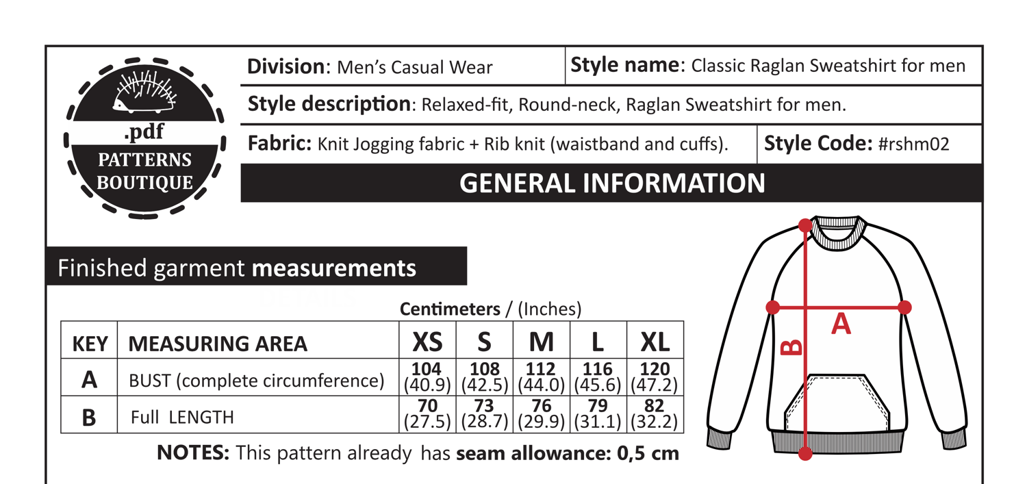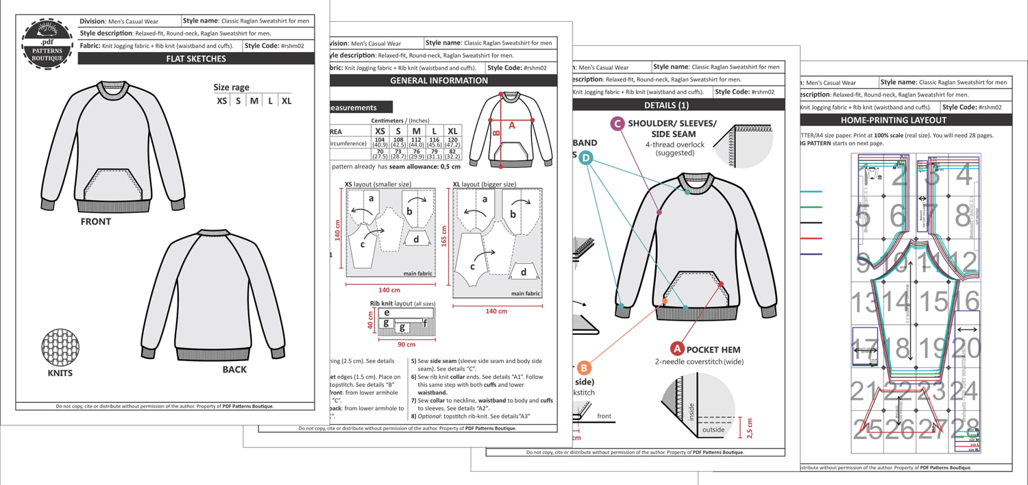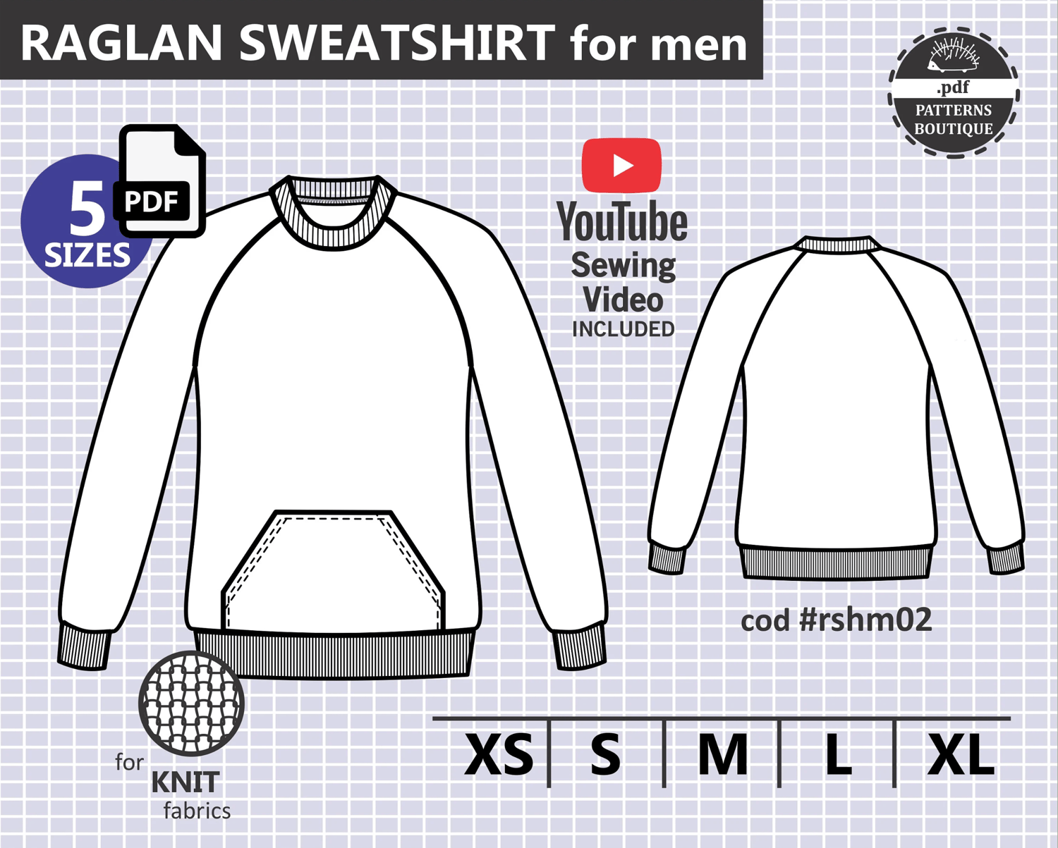 Raglan Sweatshirt for Men / PDF Sewing Pattern & Youtube Video / 5 Sizes: XS to XL / Instant download