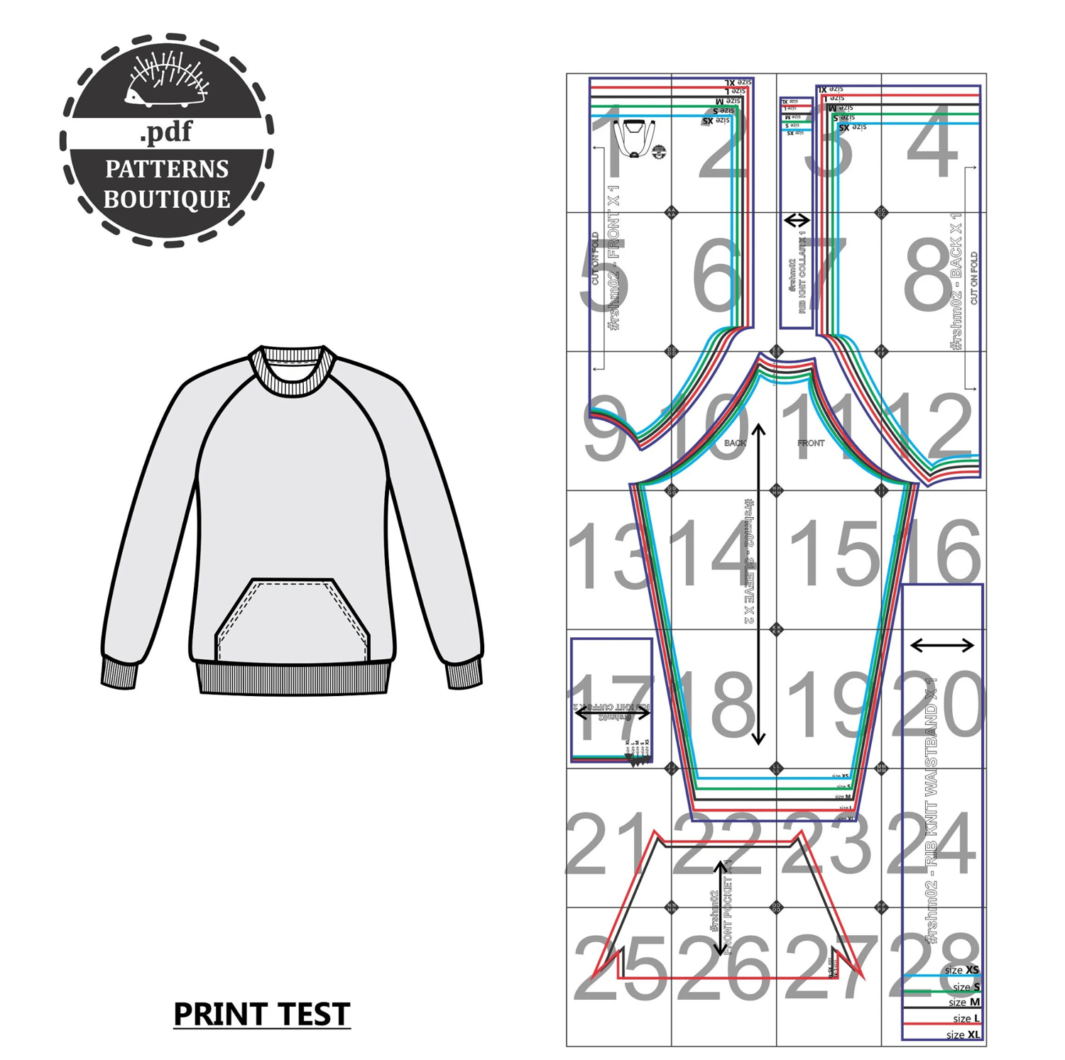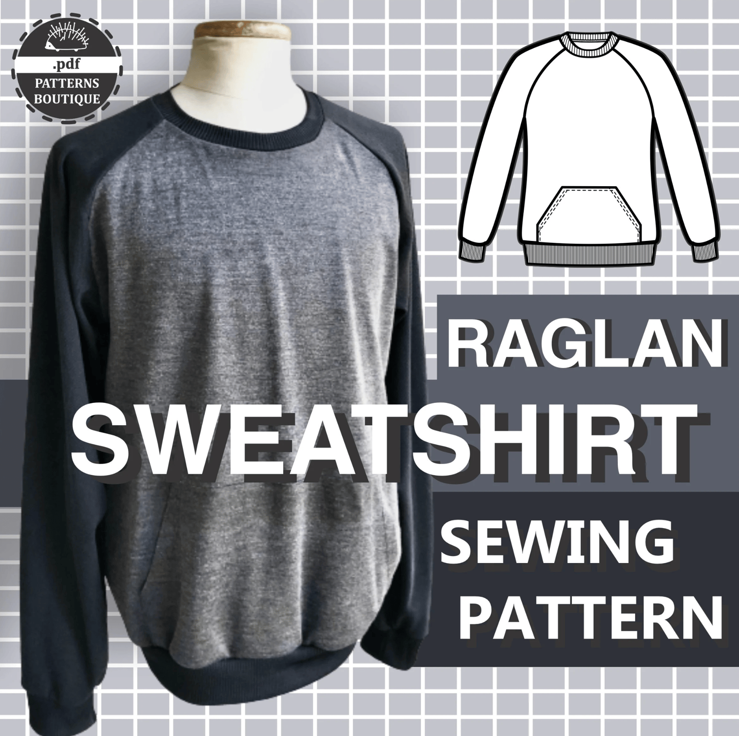 PDF Printable Sewing Pattern. CLASSIC RAGLAN CREWNECK SWEATSHIRT: Relaxed Fit