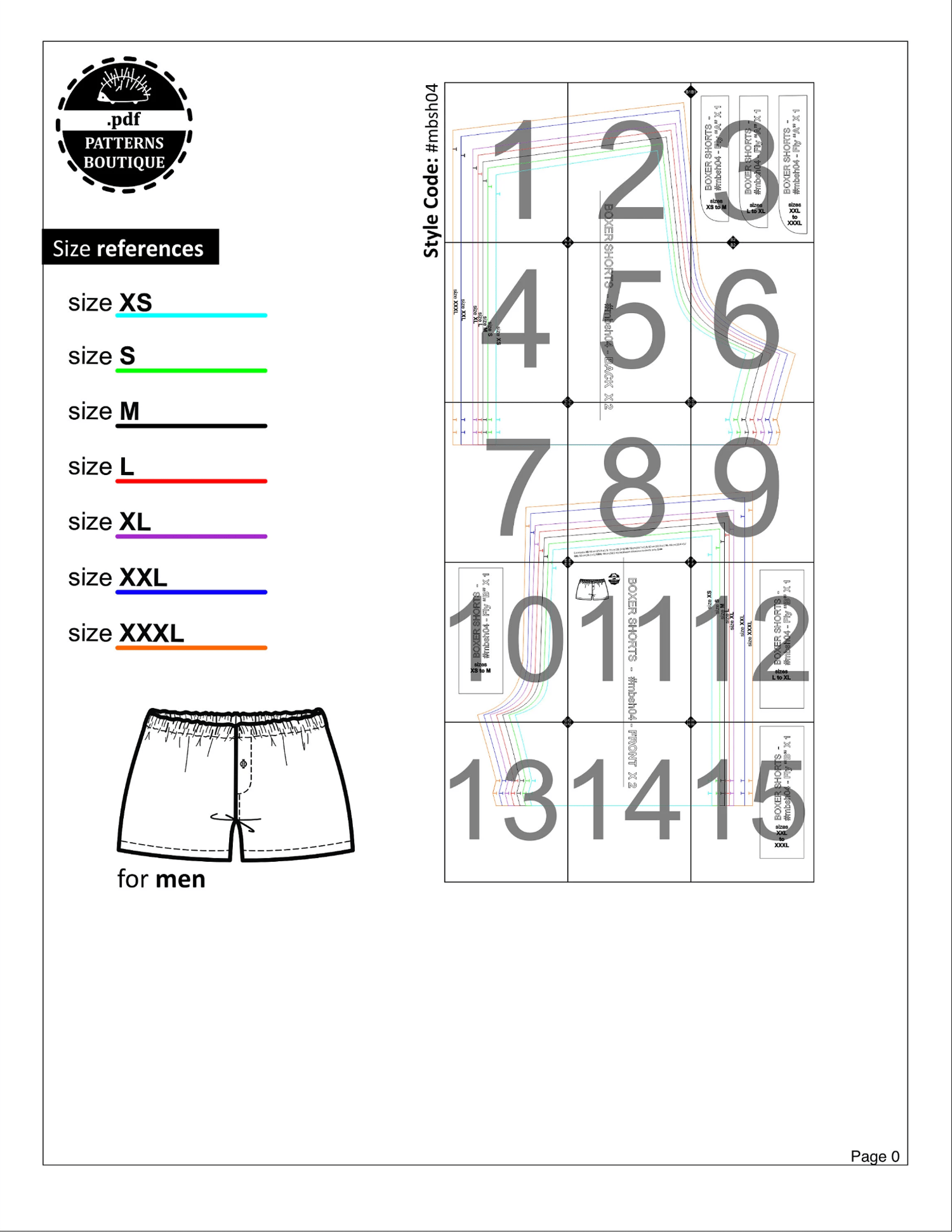 PDF Printable Sewing Pattern. BOXER SHORTS for MEN (Woven Fabrics). Classic fit