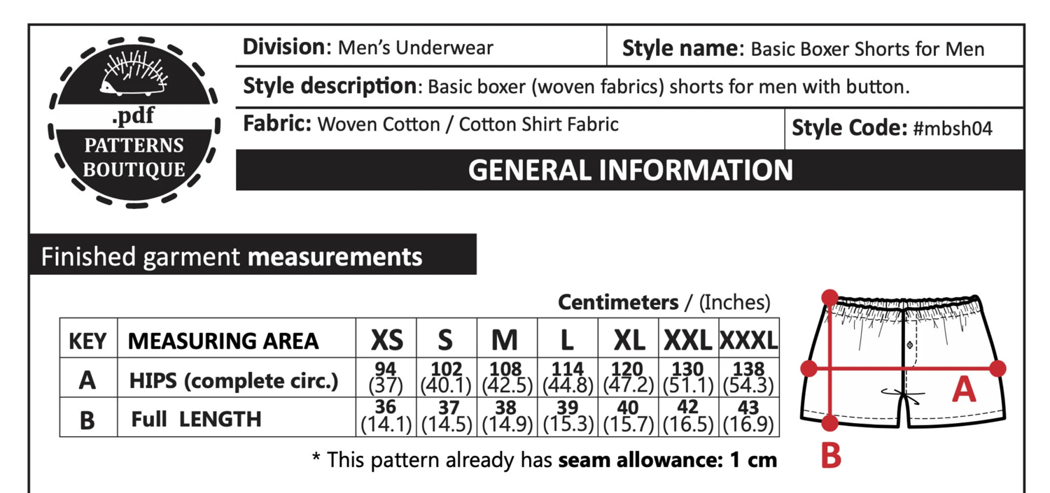 BOXER SHORTS for men / PDF Sewing Pattern & Youtube Video / Classic Boxer Shorts / 7 Sizes: XS to XXXL / Instant download