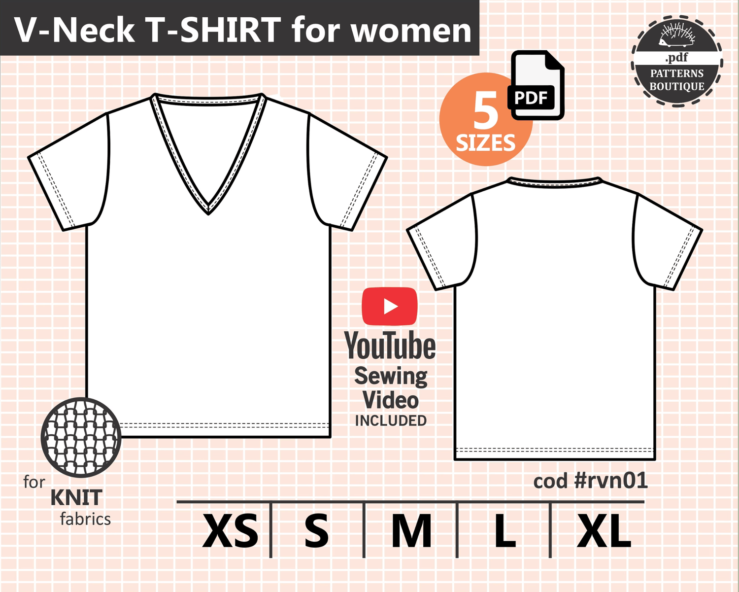 V-NECK T-SHIRT for Women / PDF Sewing Pattern & Youtube Video / 5 Sizes: XS to XL / Instant Download