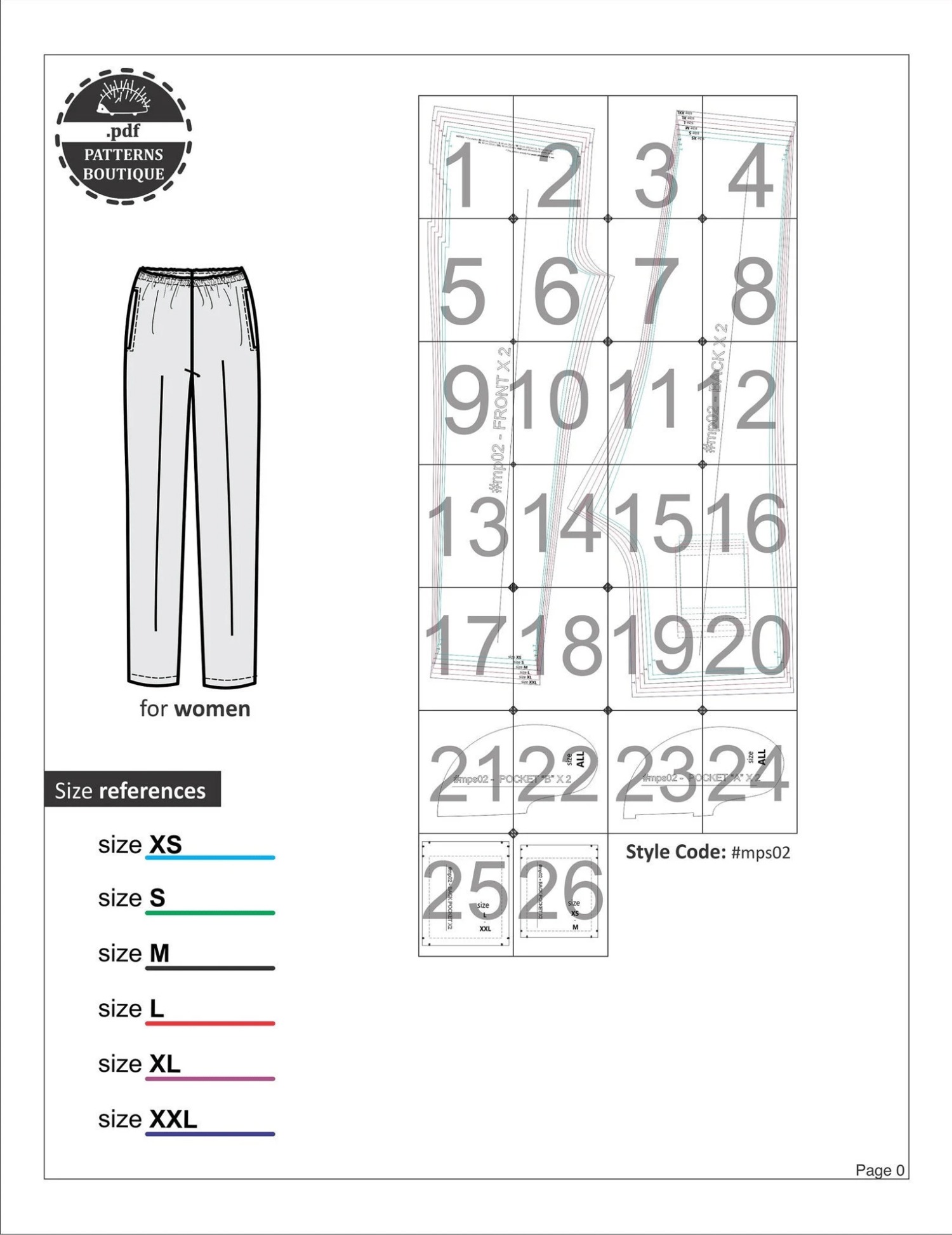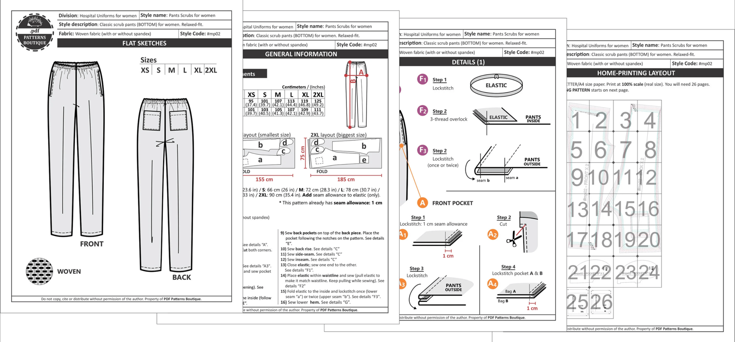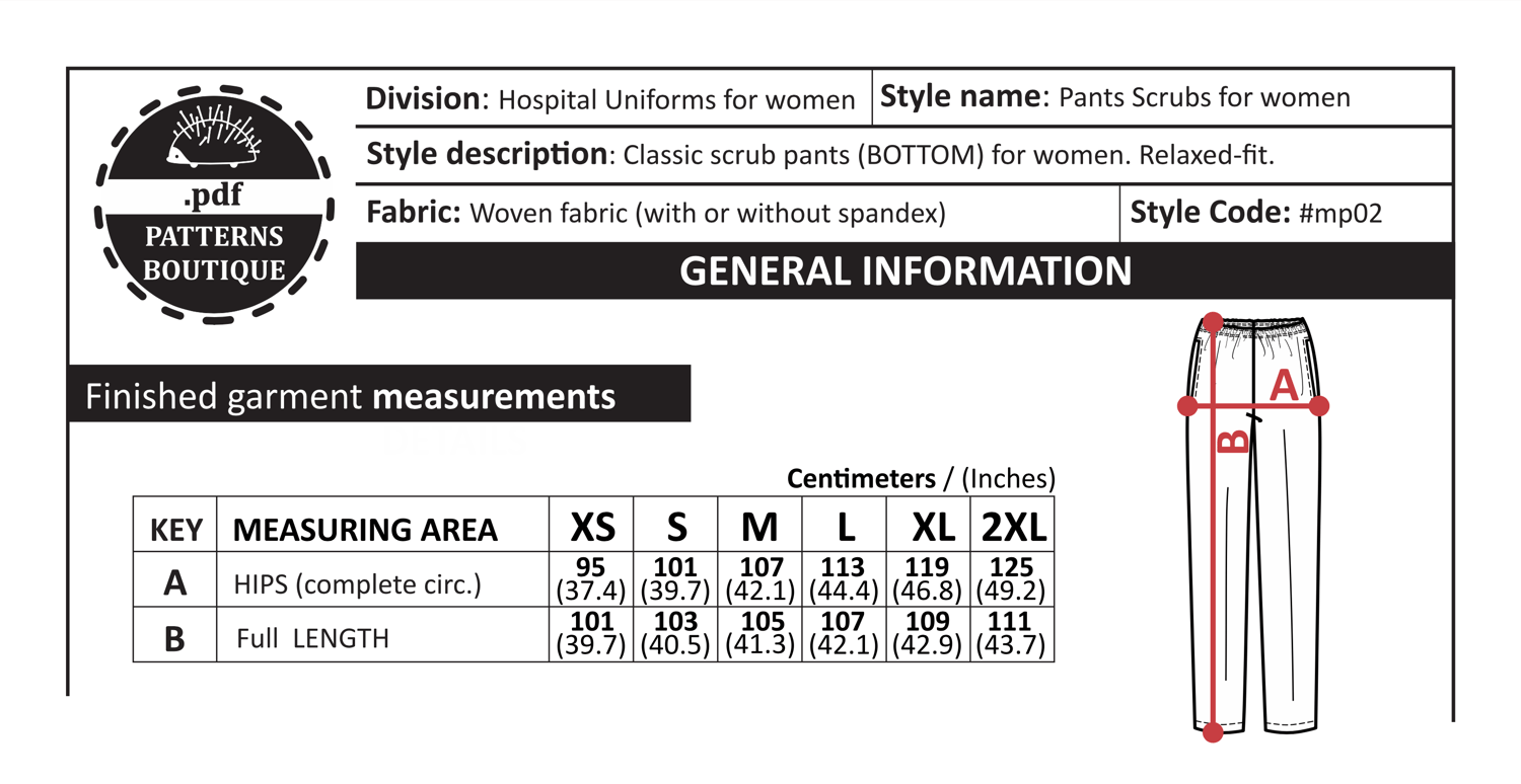 PDF Printable Sewing Pattern: SCRUBS PANTS for Women. Healthcare Uniform: Regular Pull-On Pants. Comfortable/Regular Fit.