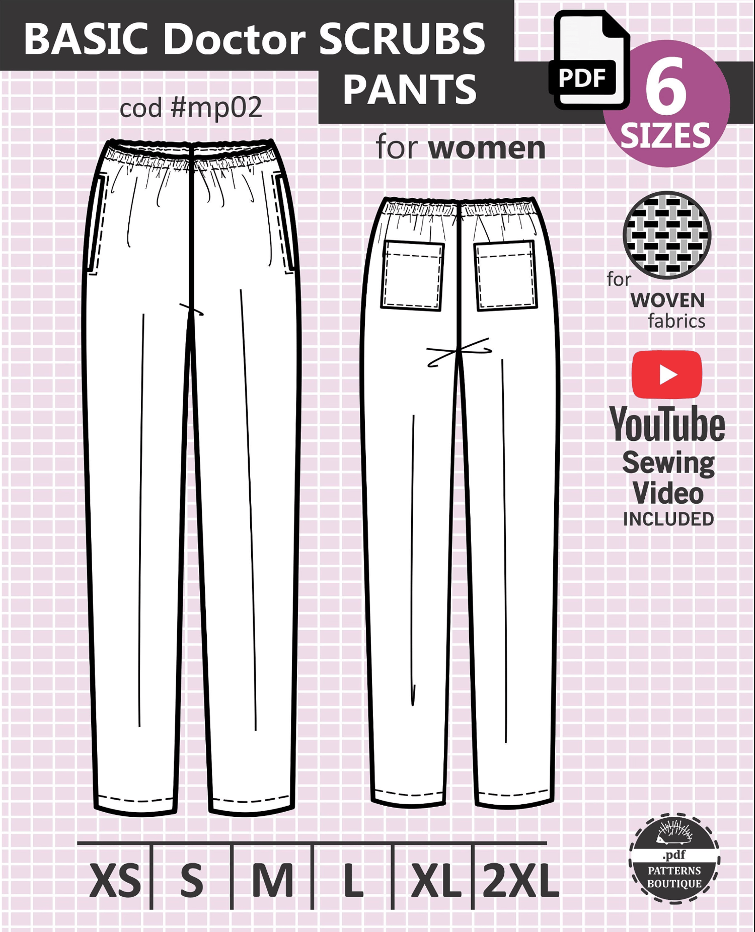 DOCTOR SCRUBS PANTS for Women / PDF Sewing Pattern & Youtube Video / 6 Sizes: XS to XXL / Instant Download