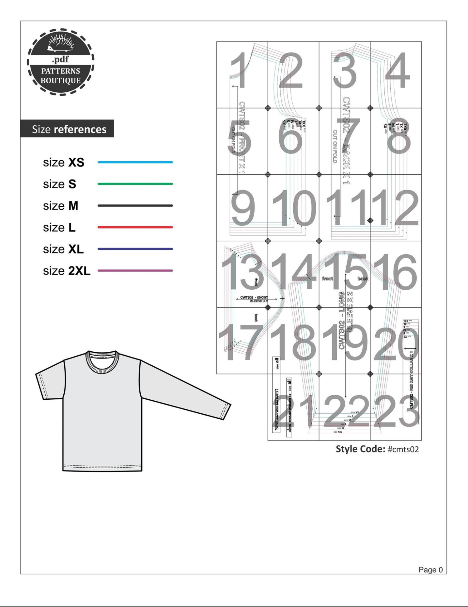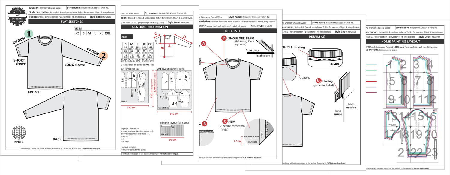 PDF Printable Sewing Pattern. CLASSIC T-SHIRT for Women with Both Short and Long Sleeves: Relaxed/Classic fit