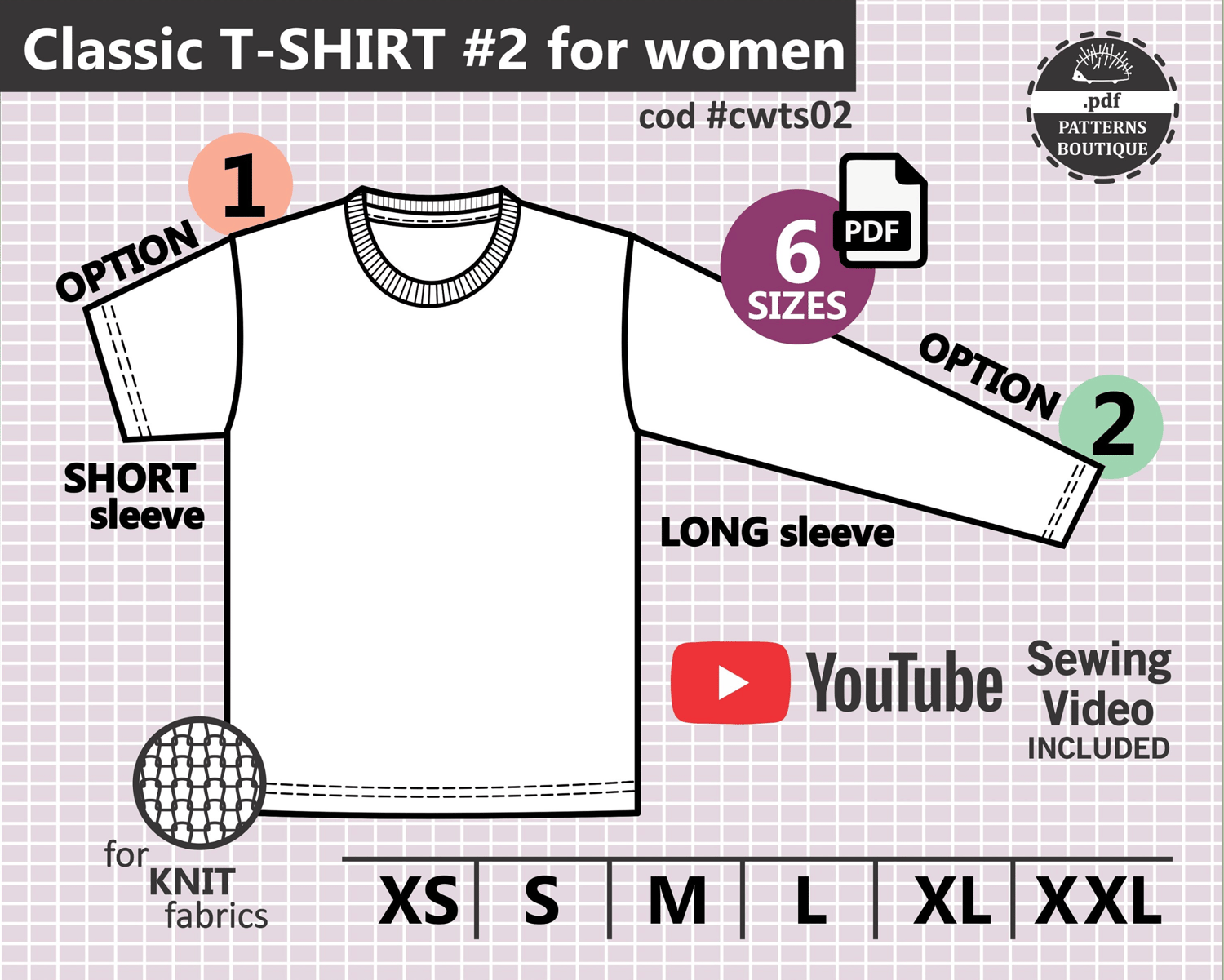 Basic T-Shirt for Women / PDF Sewing Pattern & Youtube Video / 6 Sizes: XS to XXL / Both Short and Long Sleeves / Instant Download