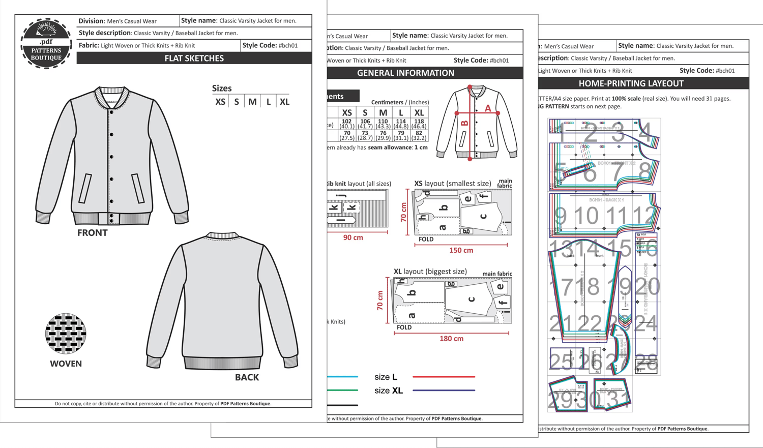 VARSITY JACKET for Men - PDF Sewing Pattern & Youtube Video / 5 Sizes: XS to XL / Instant Download