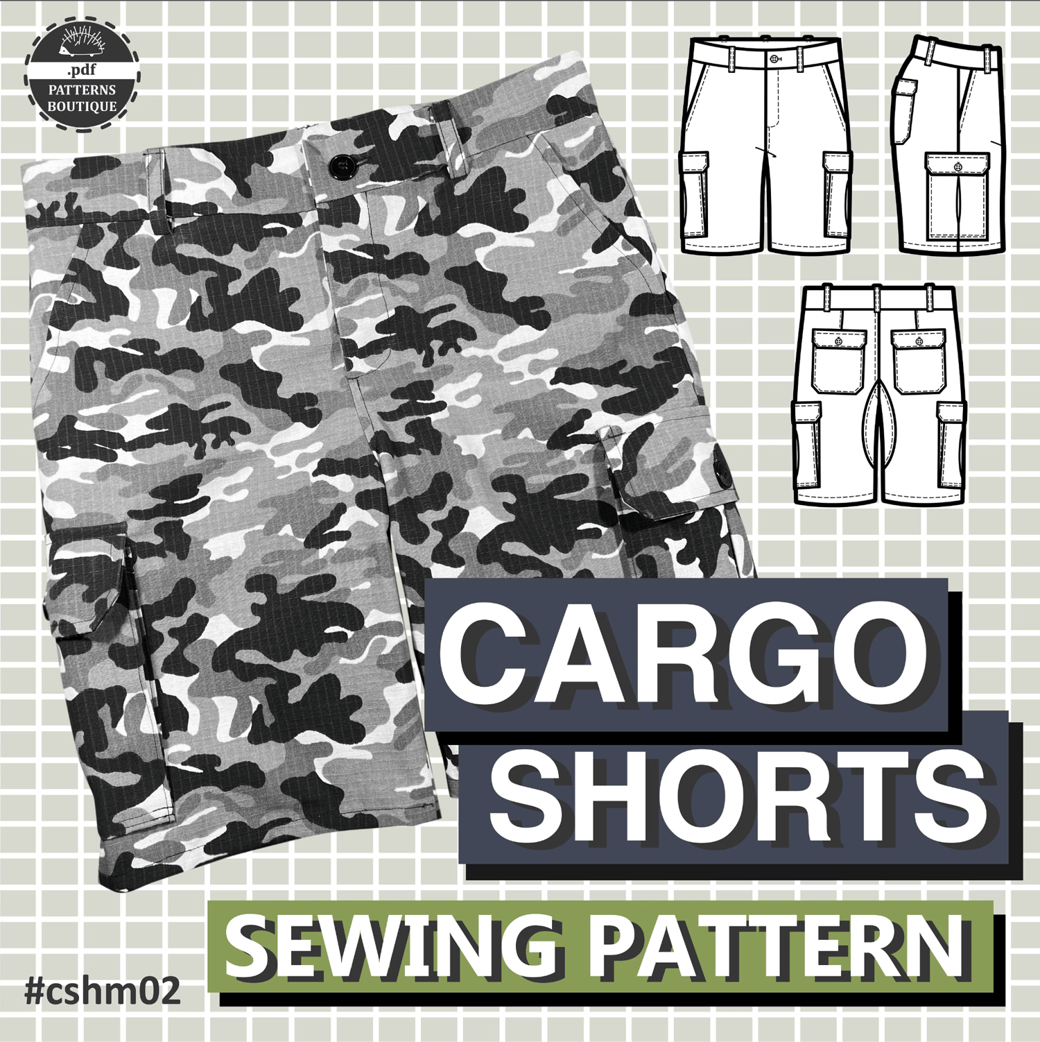 PDF Sewing Pattern. CARGO SHORTS / HEAVY DUTY MULTI POCKET SHORTS: Classic fit for men.