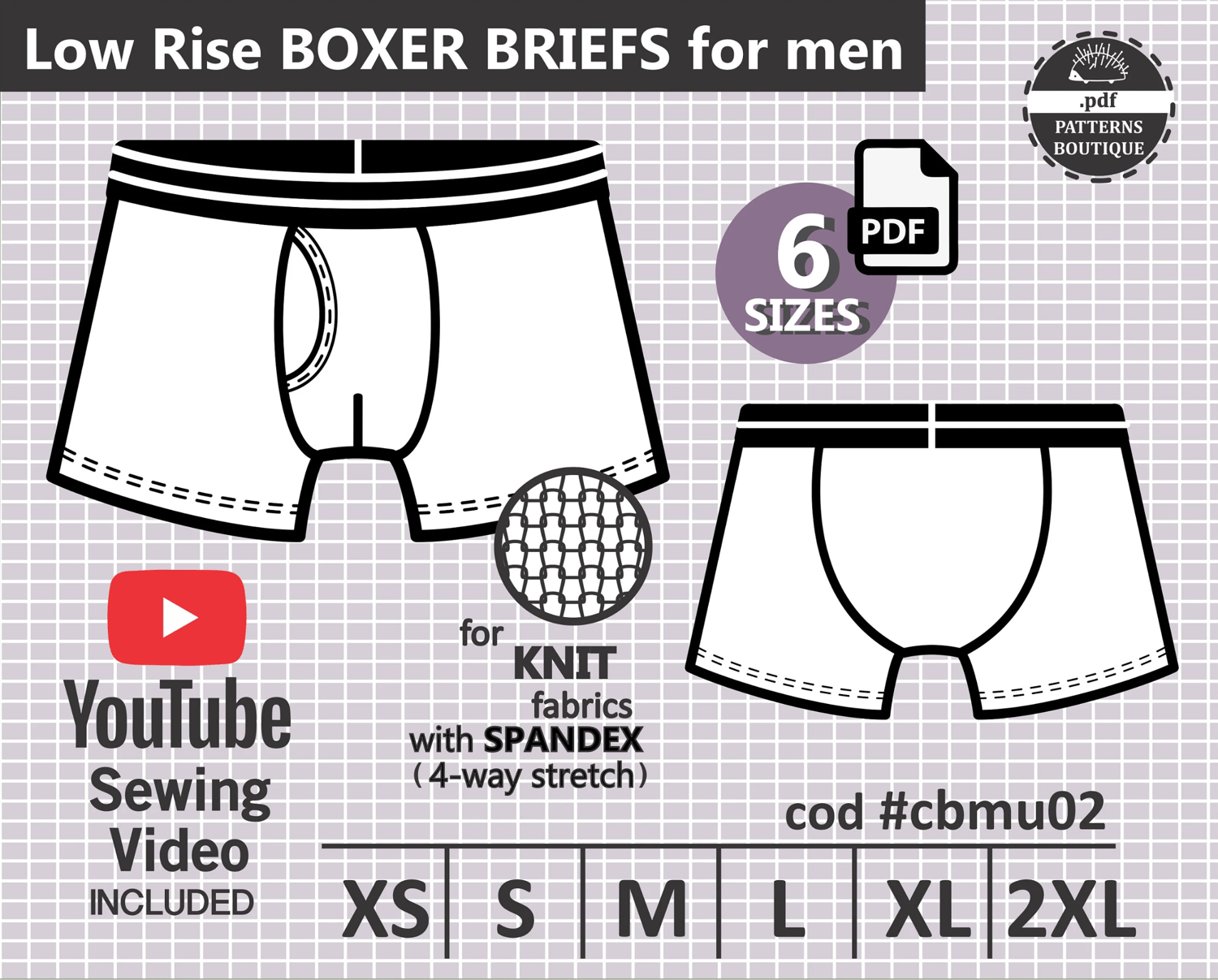 BOXER Briefs for Men / PDF Sewing Pattern & Youtube Sewing Video / Low Waisted / 6 Sizes: XS to XXL / Instant Download