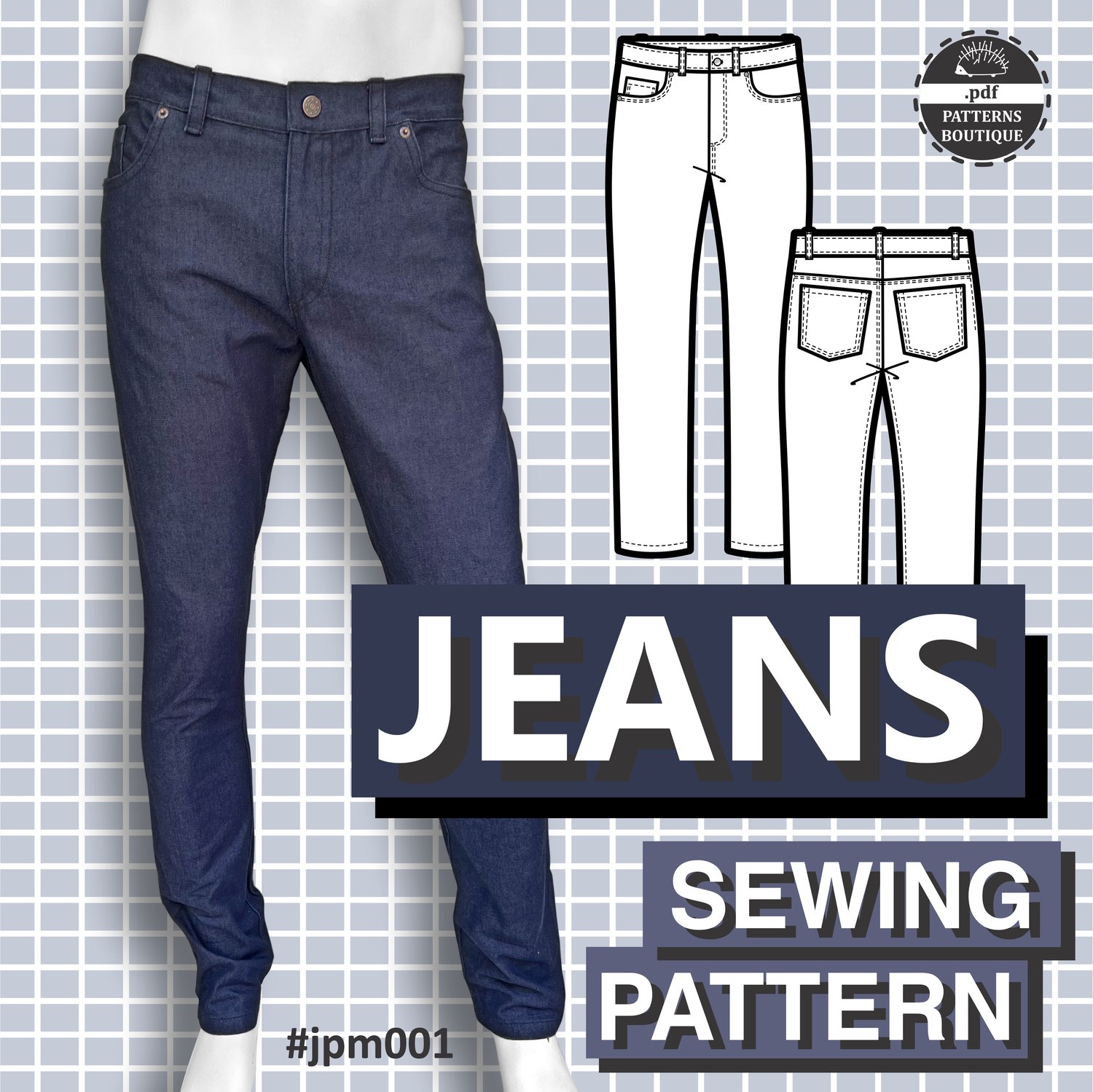 JEANS for Men: Mid-Rise Slim Straight / PDF Sewing Pattern + YouTube Video / 8 Sizes: W28 - W42 / Instant Download