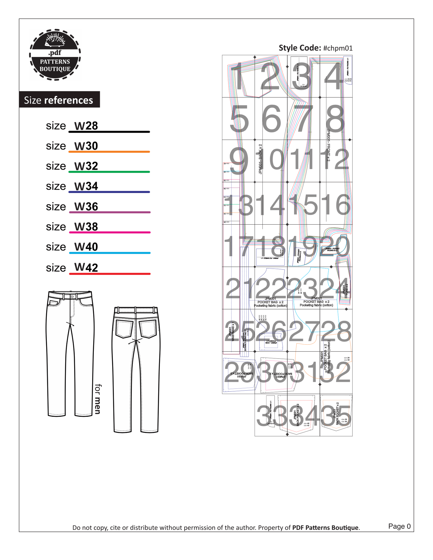 Sizes: W28–W30–W32–W34–W36–W38–W40–W42 (International / US)