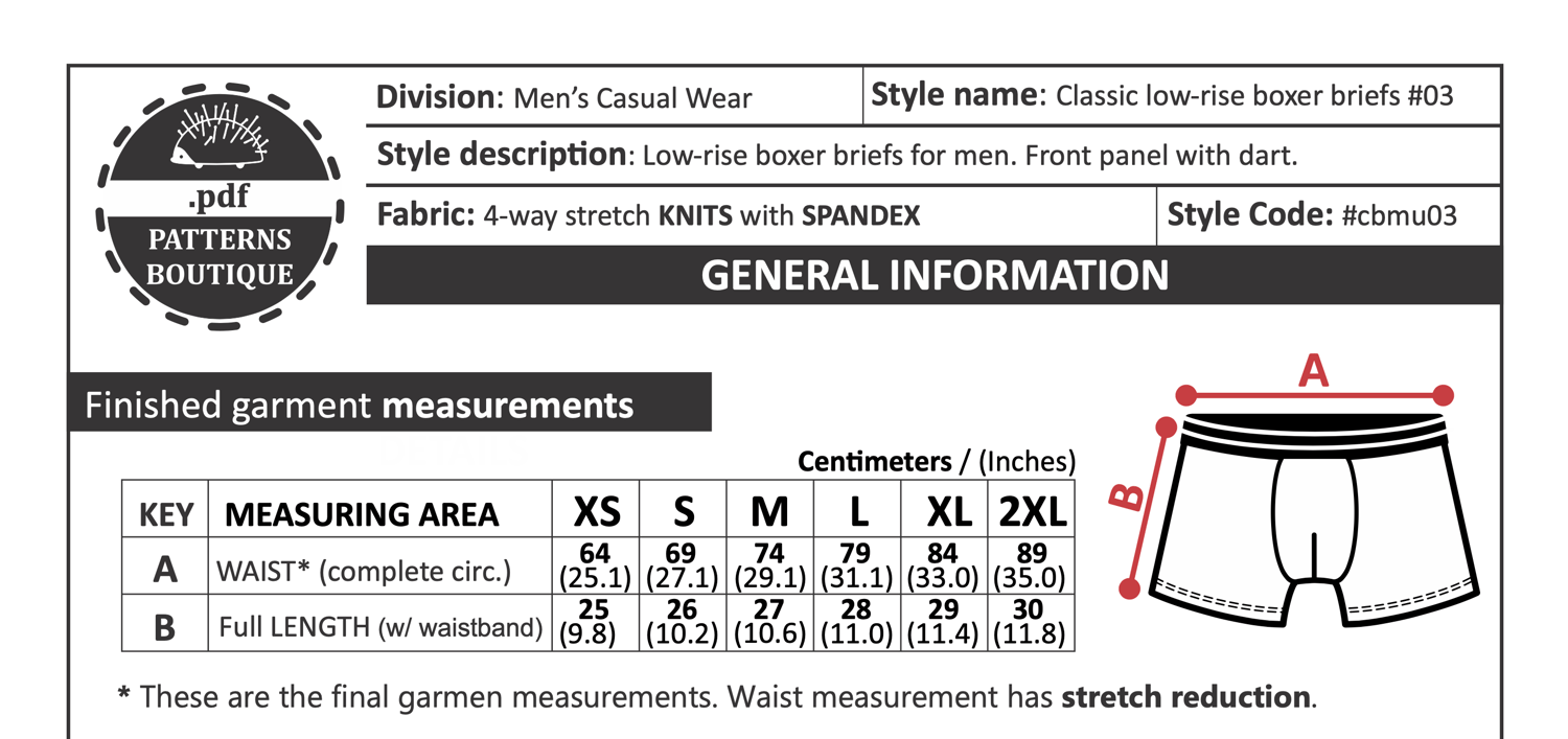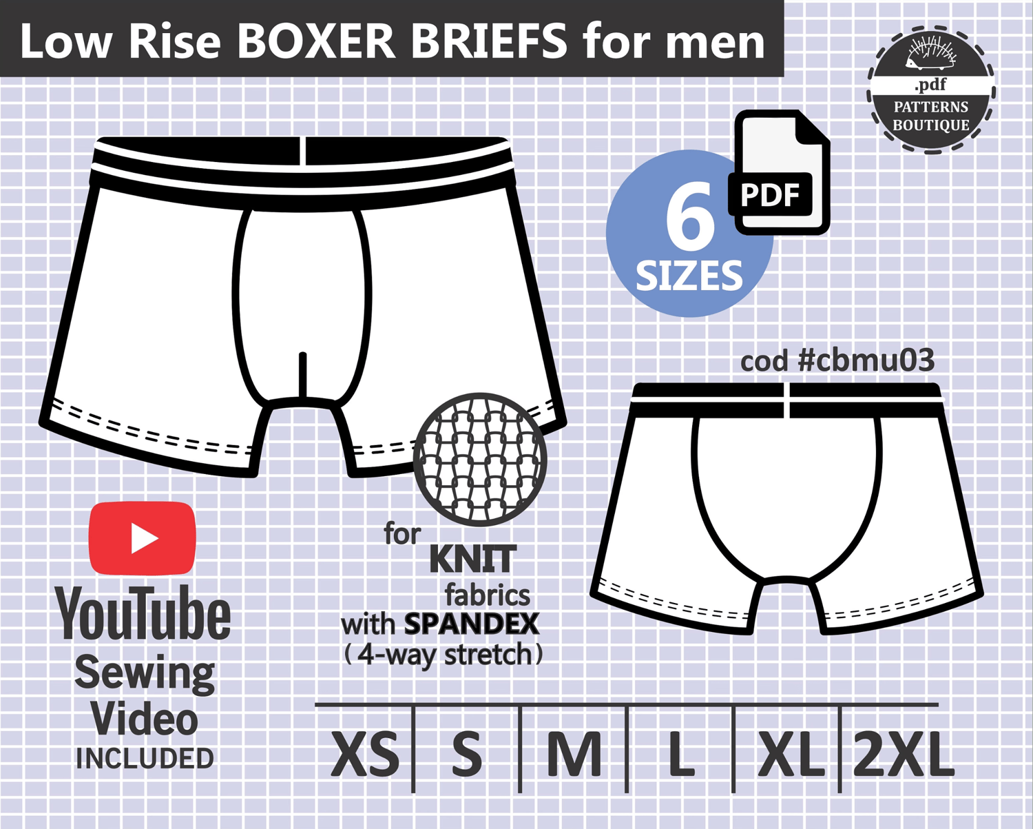 BOXER Briefs for Men / PDF Sewing Pattern & Youtube Sewing Video / Low Waisted / 6 Sizes: XS to XXL / Instant Download